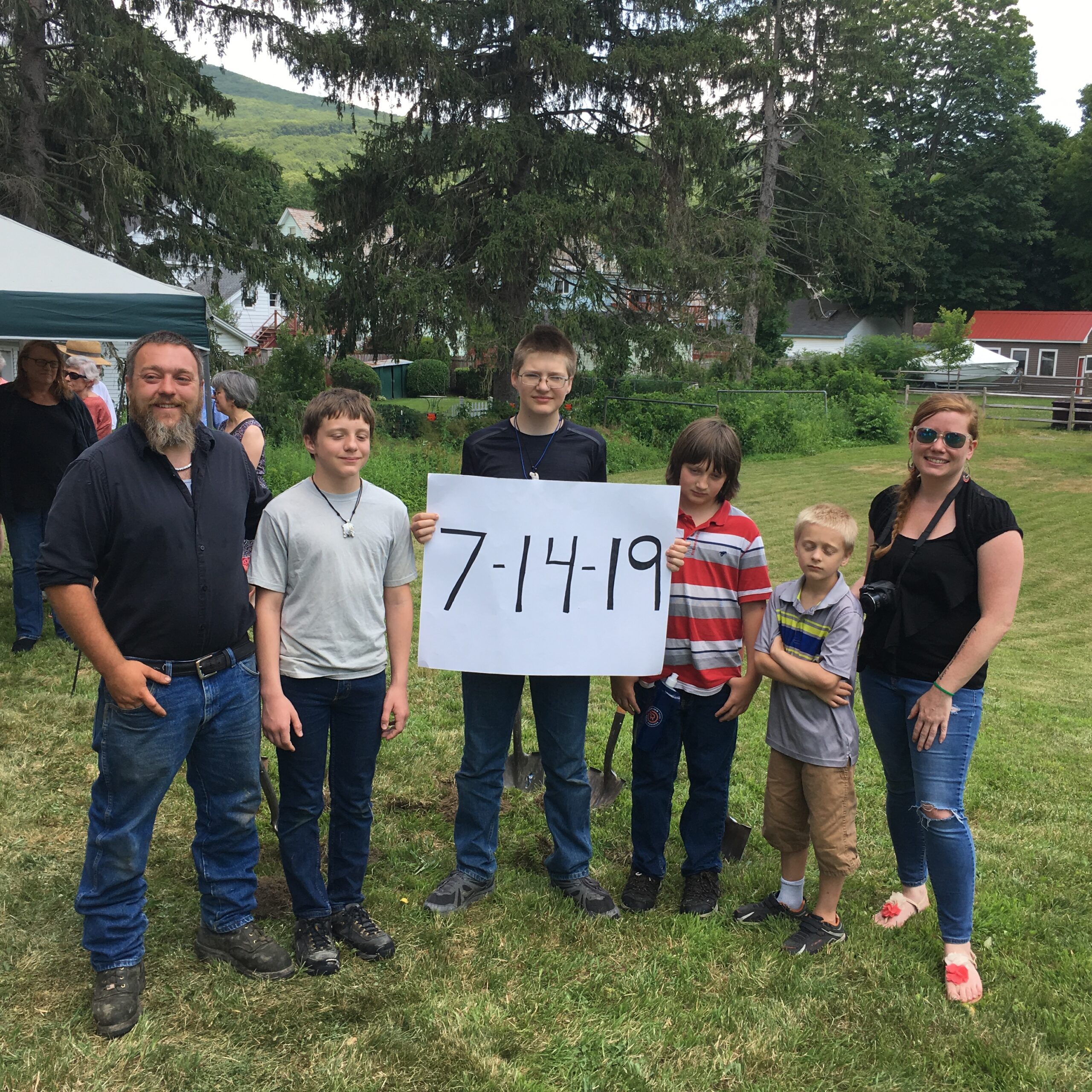 The ground-breaking ceremony for the home now under construction took place on July 14, 2019. The first two pictures show the soon-to-be homeowners, Neil and Megan.